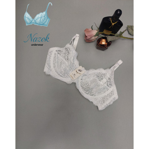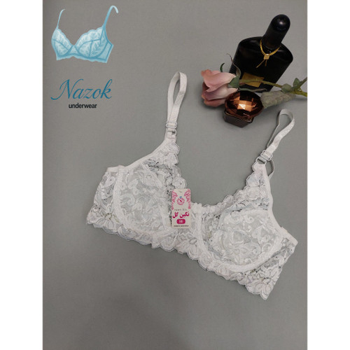 سوتین زنانه برند نگین گل سفید رنگ فنردار